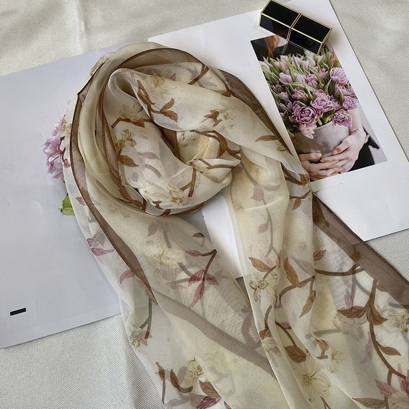 高級シルク薄手レディースロングスカーフ・おしゃれで万能